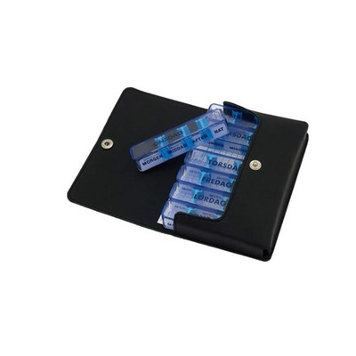 Medidos doseringseske i kunstlær - kan inneholde medisin til en uke.
