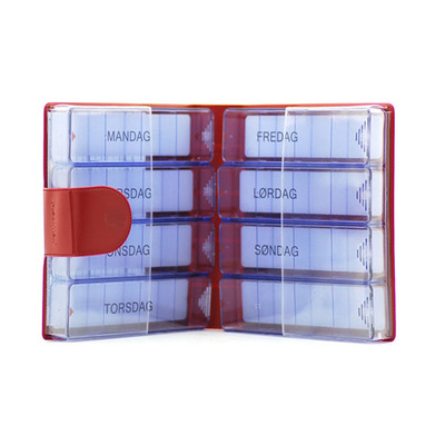 Medimax uke doseringseske med store rom og fast rominndeling er designet til personer som skal ta store eller mange tabletter daglig. Doseringsesken er også ideell til personer som har vanskelig ved å håndtere mindre gjenstander, eller har nedsatt syn. Lokkene er markert med ukens 7 ukedager, og på siden er det markert med morgen, middag, kveld og natt. Eskene har fast rominndeling og skrivefelt på baksiden.