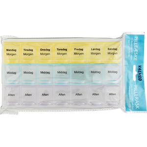 ValMed Pilleeske har 21 rom fordelt på ukens syv dager, morgen, middag og kveld. Med en pilleeske er det lettere å huske om du har tatt pillene dine hvis du går på en medisinkur, uansett om det er en kronisk eller kortvarig kur.