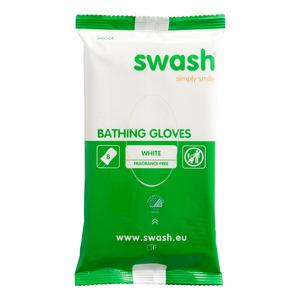 Gold Gloves fra Swash uten duft er er myke, fuktige og praktiske vaskehansker. Hanskene er laget i en fin, høy kvalitet og i en god passform til hånden. Vaskehanskene inneholder en pH-nøytral krem som renser og pleier huden effektivt. Vaskehanskene er gode til kroppsvask i situasjoner der det ikke lengre er mulig eller praktisk gjennomførbart å dusje. Hanskene er uten parfyme, parabener eller lateks og inneholder pleiende ingredienser, blant annet E-vitamin.
