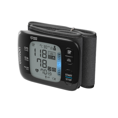 Omron RS7 Intelli IT blodtrykksmåler er designet for å ta målinger av blodtrykk og puls gjennom håndleddet. Måleren har sensorer som viser hom apparatet er plasert riktig for å få mest presis måling av blodtrykket og pulsen.