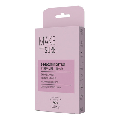 Make Sure Ovulation Test Strip er en hjemmetest som er utviklet for å måle luteiniserende hormon (LH) i urinen. Testen bruker en kombinasjon av monoklonale og polyklonale antistoffer for å påvise en økning i LH, som ofte inntreffer 12-36 timer før eggløsningen. Ved regelmessig bruk kan testen bidra til å identifisere den perioden hvor det er størst sannsynlighet for befruktning. Testen gir et visuelt resultat og viser om LH-nivået er forhøyet.