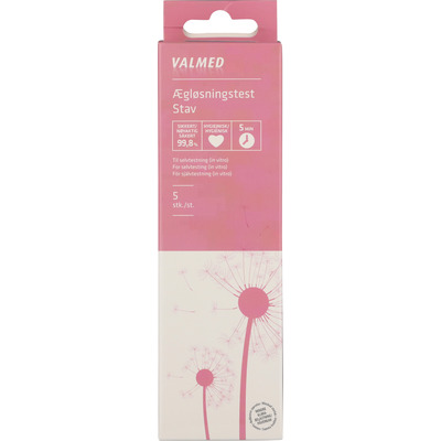 Eggløsningstesten til ValMed er laget for å teste hjemme, og er mer enn 99,8% sikker. Testen måler tilstedeværelsen av hormonet LH (lutein hormon), og vil med stor nøyaktighet vise hvilke dager det er størst mulighet for å bli gravid. Den er enkel å bruke og forstå, og vil vise resultatet etter bare 5 minutter.