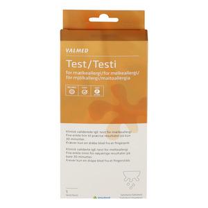 ValMed Melkeallergitest er en rask og enkel hjemmetest som screener for melkeproteinallergi ved å måle spesifikke IgE-antistoffer i blodet. Testen er relevant for personer med symptomer som hudutslett, diaré, oppblåsthet eller magesmerter etter inntak av melk. Ved hjelp av en liten blodprøve fra fingertuppen viser testen om kroppen reagerer med en allergisk immunrespons på kumelkproteiner.