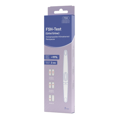 Nordic Tests Menopause test FSH måler nivået av FSH (follikkelstimulerende hormon) i urinen. FSH øker betydelig når eggstokkfunksjonen avtar, og forhøyede FSH-nivåer er et av de tidligste tegnene på begynnende overgangsalder eller redusert eggstokkreserve. Testen kan brukes enten ved å dyppe testpinnen direkte i en oppsamlet urinprøve eller ved å urinere direkte på pinnen. Resultatet avleses i løpet av 10 minutter.