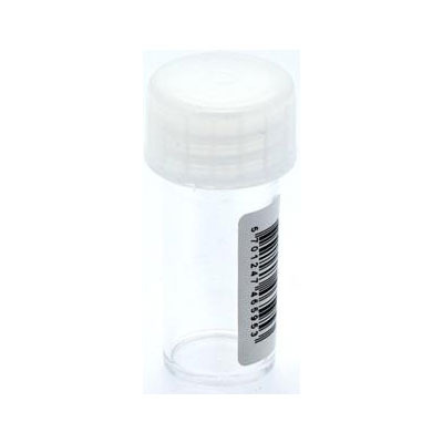 Urinbegeret er laget av gjennomsiktig plast og har et tettsittende skruelokk med riller.