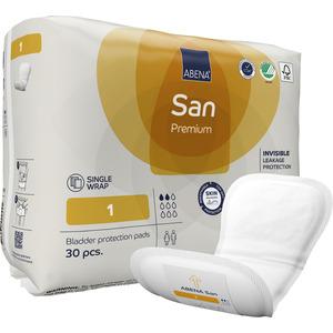 Abena San-serien er pustende og anatomisk formede bind som holder huden frisk og har god passform. Bindet er utstyrt med Top Dry System, som sikrer god komfort.