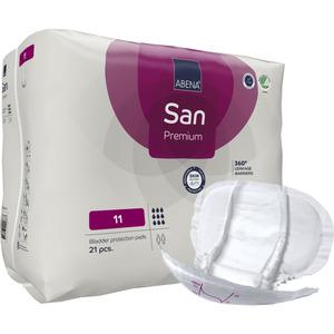 Abena San-serien inneholder stående lekkasjebarrierer kombinert med tverrgående barrierer, noe som gir 360 graders lekkasjebeskyttelse. Bleiene har en våthetsindikator med gradert skala og et luktsystem som reduserer risikoen for luktplager.