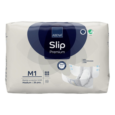Abena Slip er anatomiske bandasjer med god passform og Top-Dry System som sikrer en tørr overflate og beskyttelse av huden. Produktene har oppreist lekkasjebarriere og elastiske ben for best mulig beskyttelse mot lekkasje.