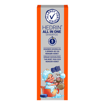 Hedrin All In One Shampoo dreper effektivt levende lus og egg og renser håret.