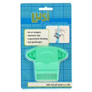 Lusekammen fra Lusi er laget av sterkt plastmateriale med avrundede tenner for å unngå slitasje på hodebunnen. Den spesielle utformingen gjør kammen enkel å bruke og rengjøre. Kammen er den eneste på markedet som kan åpnes, slik at lusebehandlinger, balsam og lus kan skylles av uten problemer. Det ergonomiske håndtaket gir et fast og sikkert grep under kjemming, noe som gjør det lettere å gå systematisk og grundig gjennom håret.