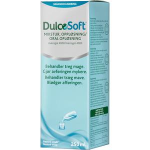 DulcoSoft er laget av makrogol 4000, som er et molekyl som binder væske i tarmen og mykgjør avføringen. Når dette skjer, øker tarmbevegelsene og trangen til å gå på toalettet oppstår. Virkestoffet virker fysisk i tarmen og tas ikke opp i kroppen. DulcoSoft er et smakløst pulver som kan blandes i hvilken som helst væske - kald eller varm.