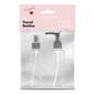 Disse 2 x 100 ml gjennomsiktige flaskene i 100 % PCR har pumpefunksjon og kan gjenbrukes i mange år. Flaskene kan inneholde en rekke ulike væsker, for eksempel sjampo og såpe. Pumpe- og sprayfunksjonen gjør det enkelt å få ut væsken. Flaskene har en perfekt størrelse for reisevesken.