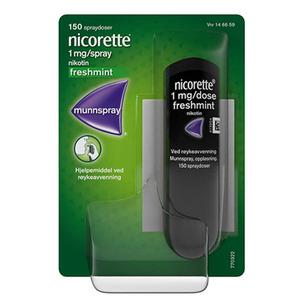 Nicorette munnspray 1mg per spray med mintsmak er et reseptfritt legemiddel til hjelp for deg som vil slutte å røyke. Brukes ved nikotinabstinens, ved røykeavvenning og røykereduksjon