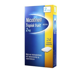 Nicotinell tyggegummi 2mg tropisk frukt et reseptfritt legemiddel til hjelp for deg som vil slutte å røyke. Brukes ved nikotinabstinens, ved røykeavvenning og røykereduksjon