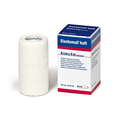 Elastomull haft er en selvheftende bandasje som gir en sikker fiksering av kompresjoner eller polstringsmaterialet noe som er spesielt fordelaktig ved forbindinger i leddområder.