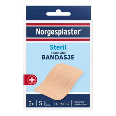 Norgesplaster Scankvikk Bandasje 5,4 x 7,6 cm, beige er en steril kompress tilpasset tørre til moderat væskende sår. Bandasjen er laget av et mykt, fleksibelt og pustende materiale som sikrer god komfort og beskyttelse. Den er velegnet for større overfladiske sår som skrubbsår eller kirurgiske sår.
