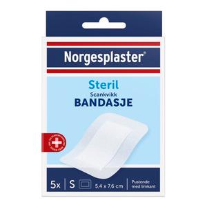 Norgesplaster Scankvikk steril bandasje er utviklet for å dekke og beskytte lite til middels væskende sår. Bandasjen har en størrelse på 5,4 x 7,6 cm og er laget med en myk, fleksibel kompress som er både pustende og hudvennlig. Den festes til huden ved hjelp av polyakrylatlim, og den absorberende puten på 2,8 x 5,0 cm er konstruert slik at den ikke fester seg til selve såret.