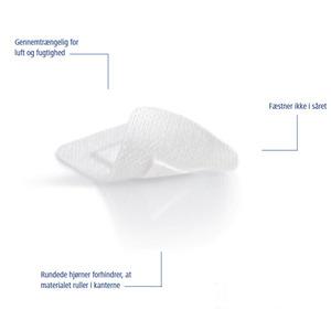 Cosmopor E Sterilt slutter seg tett om såret og er samtidig pustende. Den selvheftende forbinding absorberer ekssudat fra såret samtidig med at den beskytter mot ytre kontaminering. De runde hjørner forhindrer at materialet ruller i kantene. Bruk som beskyttelse ved mindre sårskader.