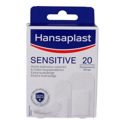 Hansaplast Sensitive Strips er en pakke med 20 hudvennlige plaster med en myk og pustende sårpute