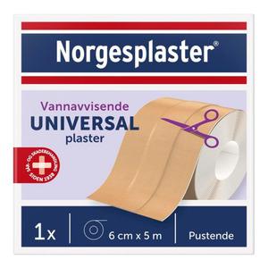 Norgesplaster Universal plaster er et fleksibelt klippeplaster på rull, utviklet for små sår, stikk, kutt og rifter. Plasteret er 6 cm bredt og 5 meter langt, og kan klippes til i ønsket lengde for individuell tilpasning.