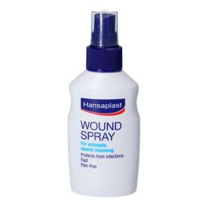 Hansaplast Sårspray er en desinfiserende løsning som forebygger infeksjon i sår og skremmer