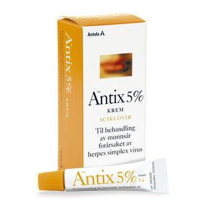 Antix inneholder virkestoffet aciklovir som hemmer virusets (Herpes Simplex virus 1) evne til å formere seg. Virusinfeksjoner kan oppstå når immunforsvaret er svekket og gi blemmer eller sår på leppene eller andre steder i ansiktet. Sterk sol, stress eller menstruasjon kan også fremkalle symptomene. Blemmene går ofte over til skorpebelagte sår. Viruset kan smitte gjennom spytt, og barn smittes ofte når de deler mat og drikke med foreldrene eller med andre barn. De fleste vil forbli symptomfrie, mens noen vil få gjentagende utbrudd av sår, ofte kalt forkjølelsessår.