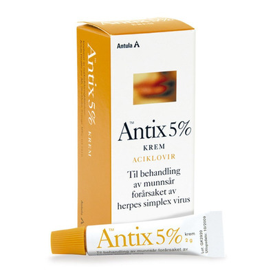 Antix inneholder virkestoffet aciklovir som hemmer virusets (Herpes Simplex virus 1) evne til å formere seg. Virusinfeksjoner kan oppstå når immunforsvaret er svekket og gi blemmer eller sår på leppene eller andre steder i ansiktet. Sterk sol, stress eller menstruasjon kan også fremkalle symptomene. Blemmene går ofte over til skorpebelagte sår. Viruset kan smitte gjennom spytt, og barn smittes ofte når de deler mat og drikke med foreldrene eller med andre barn. De fleste vil forbli symptomfrie, mens noen vil få gjentagende utbrudd av sår, ofte kalt forkjølelsessår.