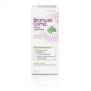 Bronwel Comp er et tradisjonelt plantebasert legemiddel til bruk ved hoste i forbindelse med forkjølelse. Vruk av Bronwel Comp mikstur hjelper til med å løse opp seigt slim og gjør det dermed enklere å hoste det opp. Miksturen lindrer også tørrhoste og irritasjon i svelget.