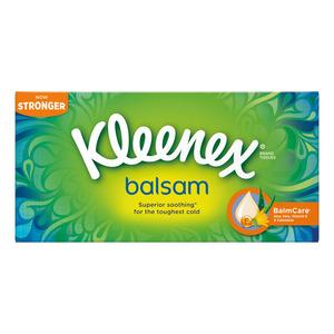 Papirlommetørkler til forkjølelse, influensa, høy feber og generell pussing av nesen. Kleenex Balsam etterlater et beskyttende lag av beskyttende Calendula, som hindrer tørr hud og rødme.