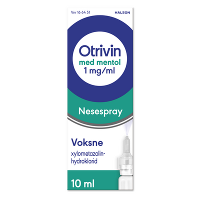 Otrivin nesespray med mentol er et reseptfritt legemiddel til korttidsbehandling mot tett nese ved forkjølelse hos voksne og barn over 12 år. Nesesprayen inneholder virkestoffet xylometazolin, og åpner raskt tett nese ved å virke på blodårene i nesen slik at disse trekker seg sammen og letter luftpassasjen. Effekten av Otrivin starter innen noen minutter og varer i opptil tolv timer.