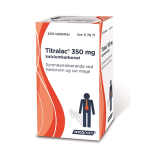 Titralac tabletter 350 mg er et reseptfritt legemiddel beregnet til bruk ved halsbrann og sur mage til voksne over 18 år.