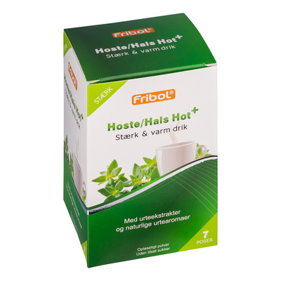 Fribol Varm Drikk Hoste/Hals Hot+ er basert på urteekstrakt tilsatt sterke aromaer