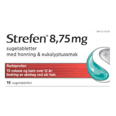 Strefen sugetabletter 8,75 mg er et reseptfritt legemiddel til kortvarig lindring av ubehag ved sår hals til voksne og barn over 12 år