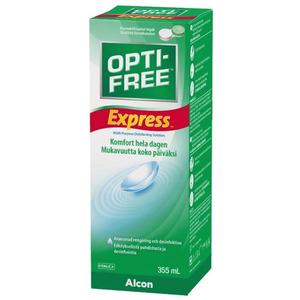 Opti-Free Express inneholder en rensende formel med trippel-virkende rens. Denne sammensetningen renser linsene og gjenoppretter dem mens de er i etuiet. Linsevæsken hjelper også linsene med å holde seg rene hele dagen, ved å vedlikeholde fuktighet og forebyggelse av opphopning av protein.