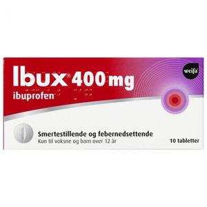 Ibux® 400 mg tabletter inneholder virkestoffet ibuprofen som brukes til kortvarig behandling ved milde til moderate smerter som hodepine, tannpine, menstruasjonssmerter, lette muskel- og leddsmerter og som febernedsettende ved for eksempel forkjølelse og influensa. Tablettene er drasjert og dermed enkle og svelge. Ved høy feber må lege kontaktes. Ibux tabletter demper inflammasjon og kan også brukes ved symptomer som hevelse, rødhet og ømhet.