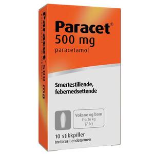 Paracet 500 mg stikkpiller er et reseptfritt legemiddel som lindrer hodepine, tannsmerter, muskel- og skjelettsmerter og menstruasjonssmerter. Paracet stikkpiller virker også febernedsettende og kan brukes ved influensa og forkjølelse.