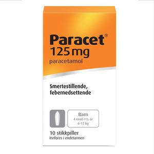Paracet 125 mg stikkpiller er et reseptfritt legemiddel som lindrer hodepine, tannsmerter, muskel- og skjelettsmerter og menstruasjonssmerter. Paracet stikkpiller virker også febernedsettende og kan brukes ved influensa og forkjølelse.