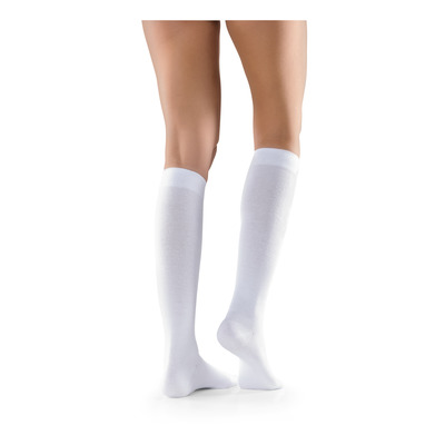 Disse Cotton Knee-kompresjonssokkene er laget av et mykt og behagelig bomullsmateriale. Kompresjonssokken har gradert kompresjon, noe som øker blodgjennomstrømningen i bena og dermed motvirker tretthet, hevelse og åreknuter. Denne bomullssokken fra Mabs er perfekt for deg som lider av disse problemene eller ønsker å forebygge dem.