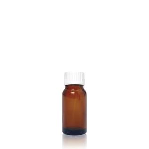 Tom brun glassflaske med lokk og dråpeteller. Flasken kan inneholde 10 ml.