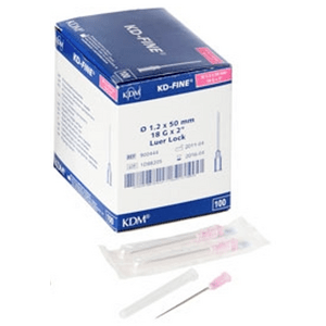 Den sterile injeksjonskanylen KD-fine har en skarp spiss som er slipt ved hjelp av elektrolyse og sandblåsing for å minimere smerte ved bruk og redusere vevsskader. Nålen er også lateksfri.