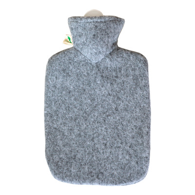 Sipacare Felt Hot Water Bottle with Felt er en varmtvannsflaske med grått filtovertrekk som lindrer muskelsmerter og stive ledd