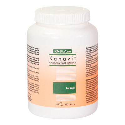 Diafarm Kanavit Calcium & Trace Minerals er et tilskuddsfôr for hunder. Det gir et daglig kalsiumtilskudd som bidrar til å opprettholde et normalt skjelett. Produktet inneholder også spormineraler som inngår i kroppens normale funksjoner. Kombinasjonen er egnet for hunder som trenger ekstra mineraltilskudd.