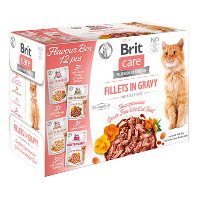 Brit Care Cat smaksboks, 4 varianter i saus er en deilig blanding av næringsrike fileter i saus.