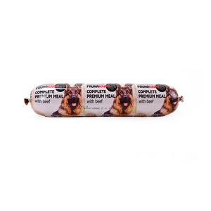 Faunakram Pølse med våtfôr, biff (80 % kjøtt) er et komplett våtfôr med vitaminer og mineraler for alle hunder