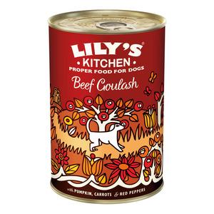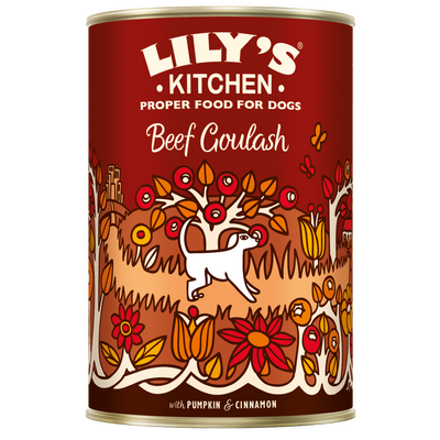 Lily's Kitchen våtfôr med oksegullash i boks og massevis av sunne vitaminer og mineraler.