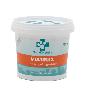 Multiflex fra Norsk Dyrehelse er et fôrtilskudd som inneholder en spesialblanding med verdifulle næringsstoffer som kan være bra for en god leddhelse på lang sikt. Multiflex støtter leddene og deres normale funksjon, og er byggesteiner for leddbrusken. Multiflex kan gi økt utholdenhet, og kan virke lindrende på leddplager. Multiflex kan også gis forebyggende til hardt arbeidende hunder.