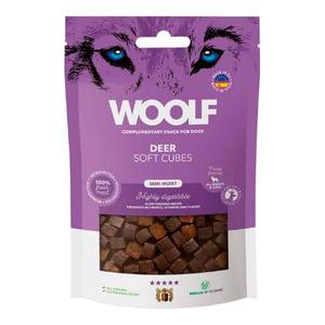 Woolf Soft Cubes Deer er myke treningsgodbiter med 85 % hjort, egnet for alle hunder