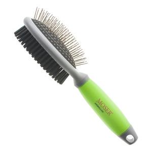 Dobbeltsidig hundebørste fra Moser med bust i rustfritt stål på den ene siden og plastbust på den andre.