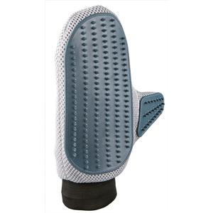 Den myke og praktiske hansken fra Trixie er laget av mesh og gummi, og er utstyrt med små gummiprikker som fjerner løs pels og støv. Børsten stimulerer også blodsirkulasjonen. Hansken kan brukes til både hund og katt.